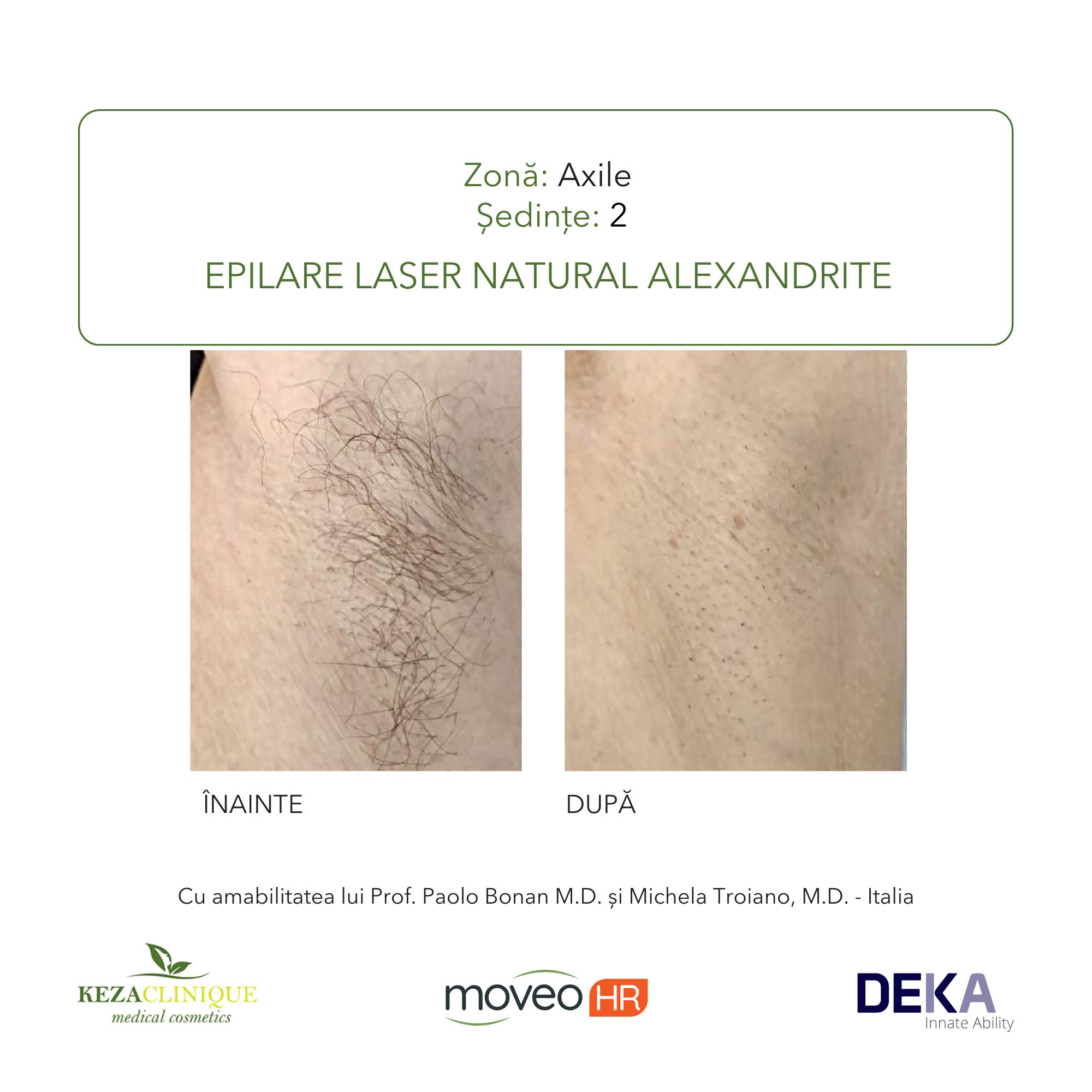 Epilarea definitivă cu laser Alexandrite este considerată soluția nr.1 la nivel mondial pentru îndepărtarea părului nedorit – un adevărat ‘standard de aur’ în domeniu. KEZA Clinique utilizează laserele Alexandrite Natural MOTUS AX/AY si AGAIN, echipamente DEKA Laser, care au revoluționat epilarea definitivă, fiind cele mai rapide și eficiente sisteme din gama lor.